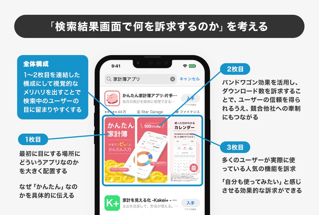 最適なスクリーンショットの作成ポイントでは、効果的なデザインだけでなく、訴求の見つけ方についても言及しましたので、是非参考にしてみてください。