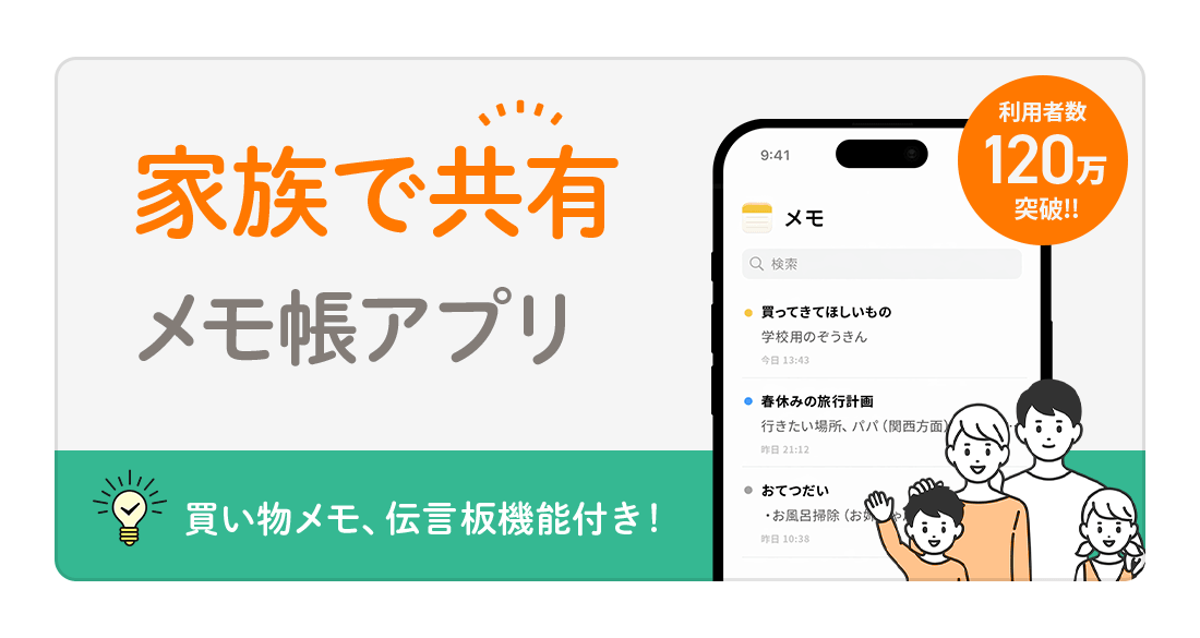 キーワードは、「共有メモ」「家族メモ」「買い物メモ」など、共同利用を想定した語句を割り当てます。